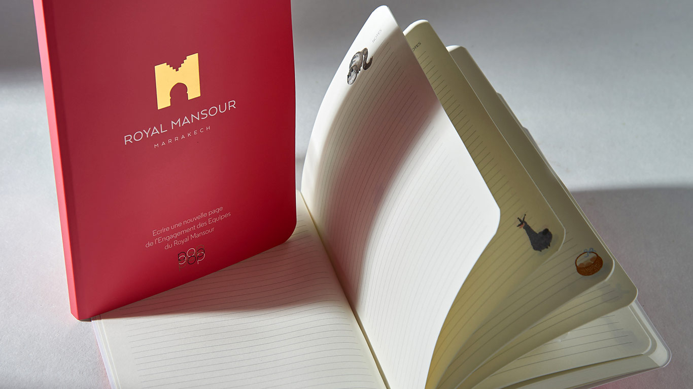 Livret Moleskine 13x21 cm, 144 p. int. sur Munken Pure 90g quadri recto/verso numérique, 4 p. de couverture sur couché satin 350g avec pelliculage mat anti rayure + marque à chaud or brillant recto seul, dos carré collé PUR et coins arrondis.